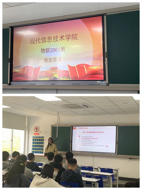 3月25日下午,物联2061本科班在学生中率先带头组织开展全国“两会”精神学习。专科班的学生在学院团总支的统一安排下,后续也将开展“两会”精神的系列学习。