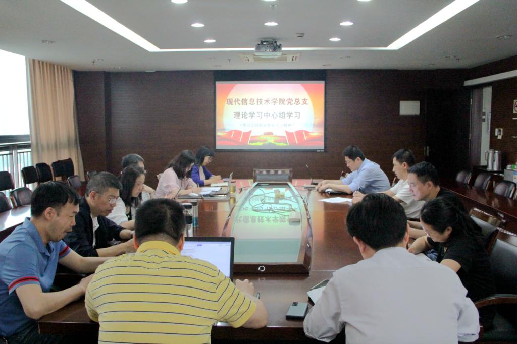 2021年5月26日,现代信息技术学院召开党总支理论学习中心组(扩大)全国职业教育大会精神专题学习会,学习宣传贯彻习近平总书记重要指示和全国职业教育大会精神,学院院长卢涤非、副院长江洪领学,中心组全体成员、全体专业负责人参加。