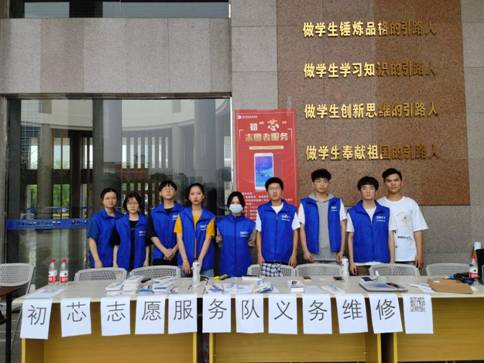 为庆祝中国共产党建党100周年,激励广大党员紧紧围绕党的群众路线教育主题,坚定理想信念,增强党员的服务意识,6月2日,现代信息技术学院党总支组织师生党员、学生入党积极分子在滨江校区开展初“芯”志愿服务活动,为全校师生无偿提供电脑维修、手机保养等服务。