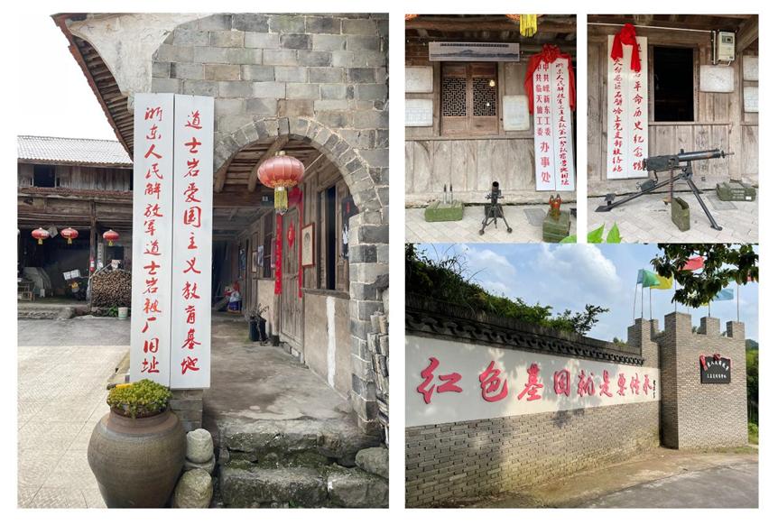 追寻红色印记的最后一站是道士岩村。它是三州乡的党建特色村,村内处处可见红色基因。抗战时期,浙东人民解放军三五支队(游击队)在道士岩村驻扎,帮助道士岩村建立农民协会,在村里设立工委办事处,研究制定作战计划,帮助村民挑水劈柴,军民一家其乐融融。近几年,该村深挖红色资源,通过全村人的努力,收集当年三五支队留下的物件,并将资料整理汇编,设立了浙东人民解放军三五支队陈列室,它是该村开展革命教育的重要场所。道士岩村在抗战时期设立了军鞋厂,用于支援红军,如今军鞋厂旧址已经几不可见,但是村里很多老人还是沿袭了当年的传统,保留了纳鞋的手艺,经常一边纳鞋,一边追忆老一辈的故事。