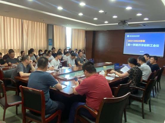 8月31日下午,现代信息技术学院组织召开新学期教职工大会,传达学校暑期中层干部读书会暨新学期工作部署会议精神,对新学期工作进行布置。会议由院长卢涤非主持。