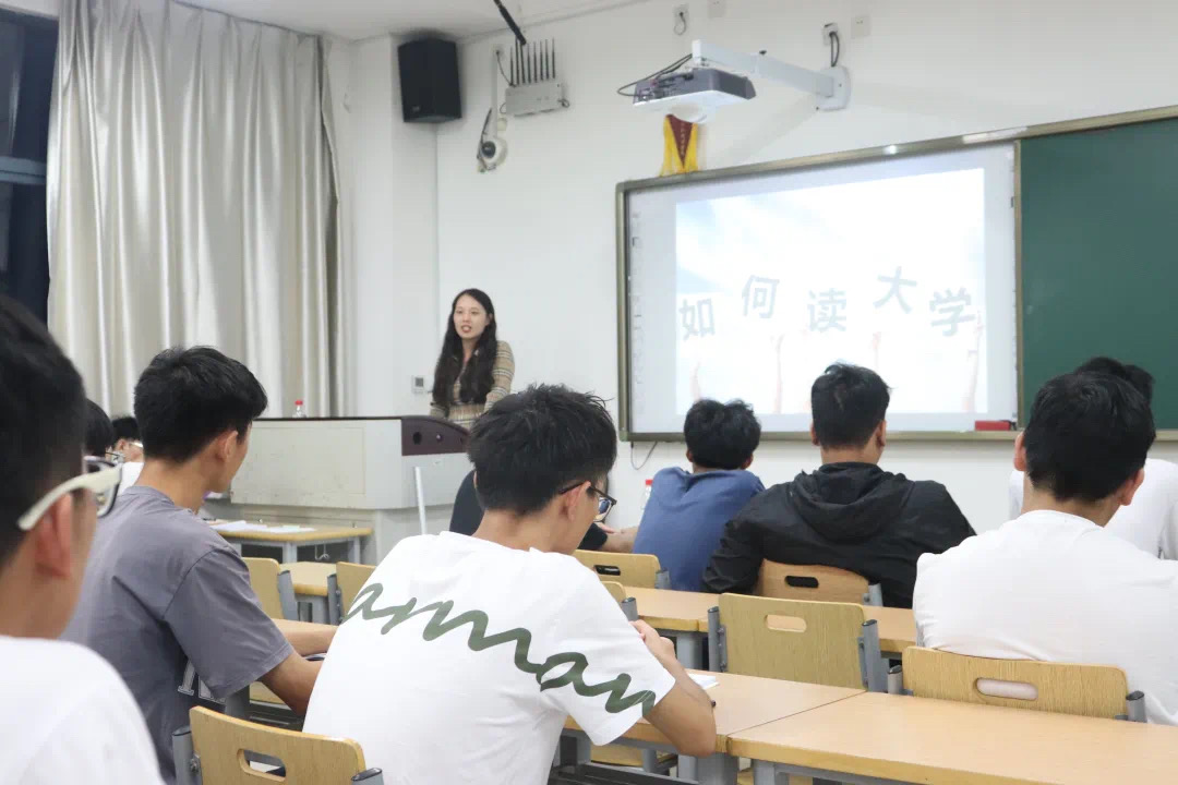 走进班会现场。任峰带领海宁校区辅导员,介绍学院概况和特色文化活动,畅谈职业生涯发展规划,指导、讲解新生防诈骗、安全、医保、体检等开学教育内容,鼓励新生们快速进入角色,主动适应大学生活,立定专业发展和素质提升目标。