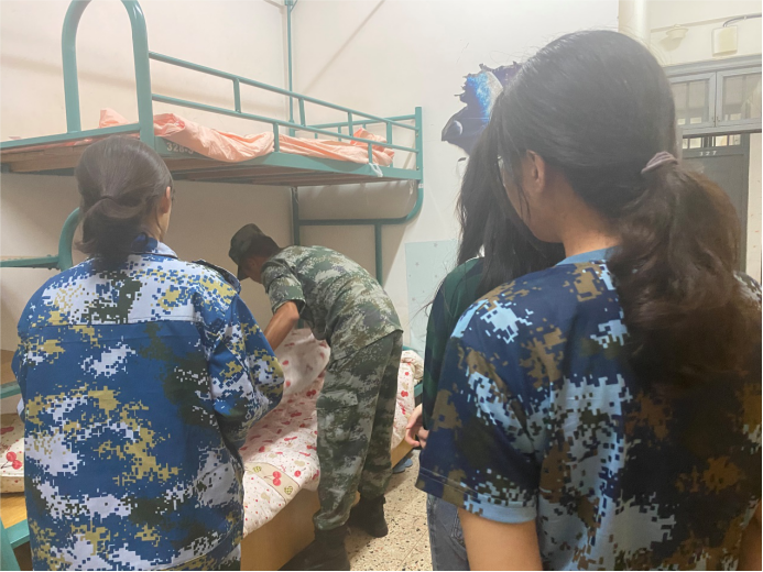 学院辅导员、班主任、助班、学生干部联合教官每日下寝指导,细心、耐心指导学生,真抓实干,具体问题具体分析,做到细节处有标准、有方法,调动学生积极性。