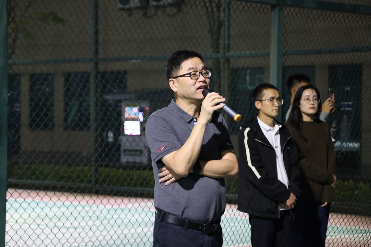 为提升学生体育运动意识,调动学生参与体育运动积极性,更好进行学校第四十一届田径运动会赛前准备,10月26日晚,现代信息技术学院党总支书记任峰在海宁校区排球场,为正在训练的信息健儿们动员鼓劲儿。