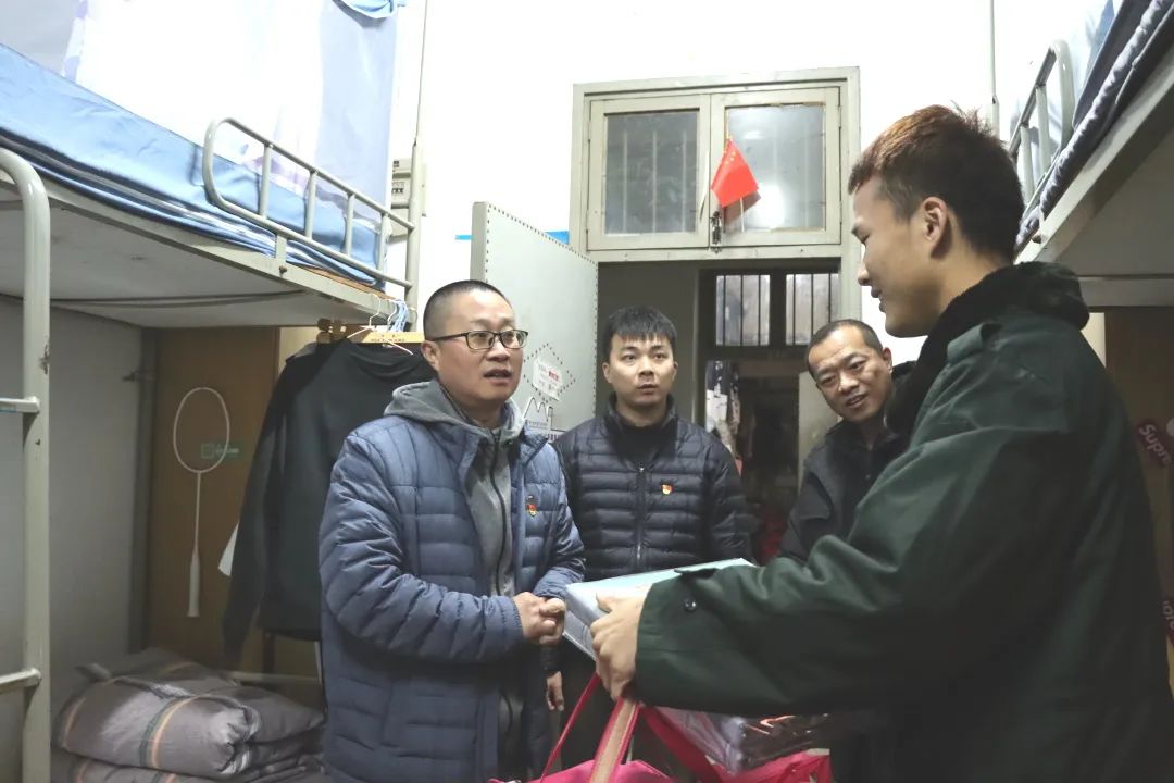 12月1日晚,大雪纷飞。学院党总支书记张荣路带队滨江校区辅导员们走进同学们的寝室,亲手将代表学院党总支关怀的新棉被与床上用品送到13名同学的手中。在同学们惊喜而感动的目光中,张书记告诉大家:“学院党总支时刻关注、关心、关爱着同学们,希望大家快乐学习,奋发有为。”他暖心提醒同学们,在寒冬之时更应保持健康的生活习惯与作息,以强健的体魄、心态学习生活。同学们表达了对张书记及党总支的感谢,表示今后会更加努力学习、积极生活,不辜负老师们的真心爱护与关怀。
