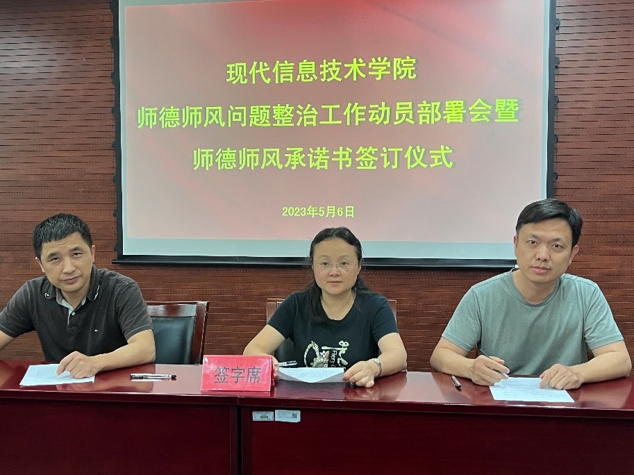 为深入贯彻落实《中共中央 国务院关于全面深化新时代教师队伍建设改革的意见》、教育部等七部门《关于加强和改进新时代师德师风建设的意见》等文件精神,根据2023年全省教育系统全面从严治党暨清廉学校建设推进会部署,浙江省教育厅办公室《全省教育系统师德师风问题整治工作实施方案》以及学校师德师风问题整治任务布置会有关要求,5月6日,现代信息技术学院召开师德师风问题整治工作动员部署会。会议由党总支书记张荣路主持,学院全体教职工参会。
