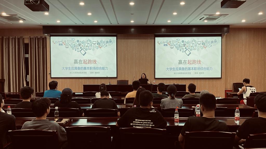 夏瑛现任浙江育英职业技术学院教务部副主任、杭州市创业导师、杭州市师友计划导师、杭州市就业援助公益导师、全球职业规划师(GCDF)、生涯规划师。夏瑛从“职场基本综合能力”、“职场应具备的礼仪”、“职场应具备的软技能”、“出入职场具备的心态”四个方面为同学们讲解了在职场中应该具备的能力。