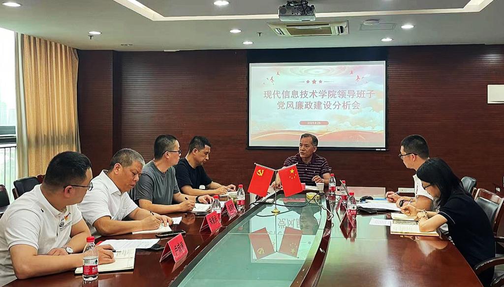 6月25日下午,现代信息技术学院召开2023年领导班子党风廉政建设分析会,学校党委副书记周增逵,学院领导班子成员、党总支委员参加会议。会议由学院党总支书记张荣路主持。