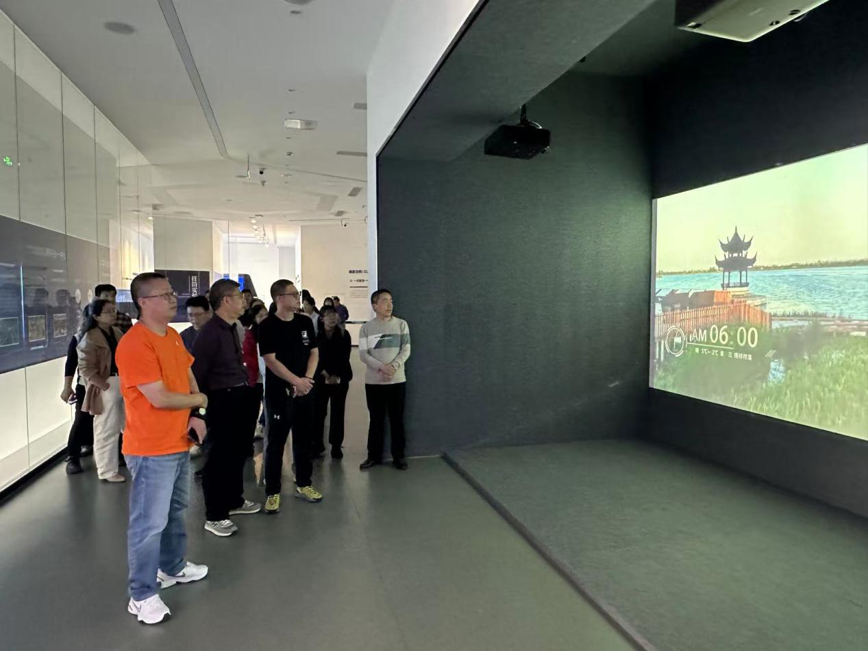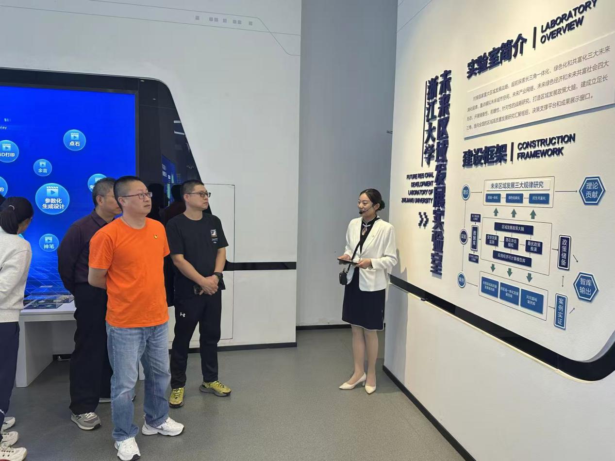 离开西塘,工会一行来到祥符荡生态湖区的浙江大学长三角智慧绿洲,实地参观未来健康实验室、创新设计中心和嘉善复旦研究院。讲解员系统介绍了科研团队在4D打印、生物合成制造、人工智能赋能设计等领域的前沿研究成果,展示了高校科研力量与区域经济深度融合的生动图景。教师们认真聆听、细致观摩,近距离了解科技创新如何助力产业升级与绿色发展,切身感受到科技创新与生态文明建设协同推进的重要价值。绿洲内错落的实验楼群与生态景观交织成景,呈现出“科技向绿、创新向善”的理念,也为此次实践活动注入了鲜明的时代色彩。