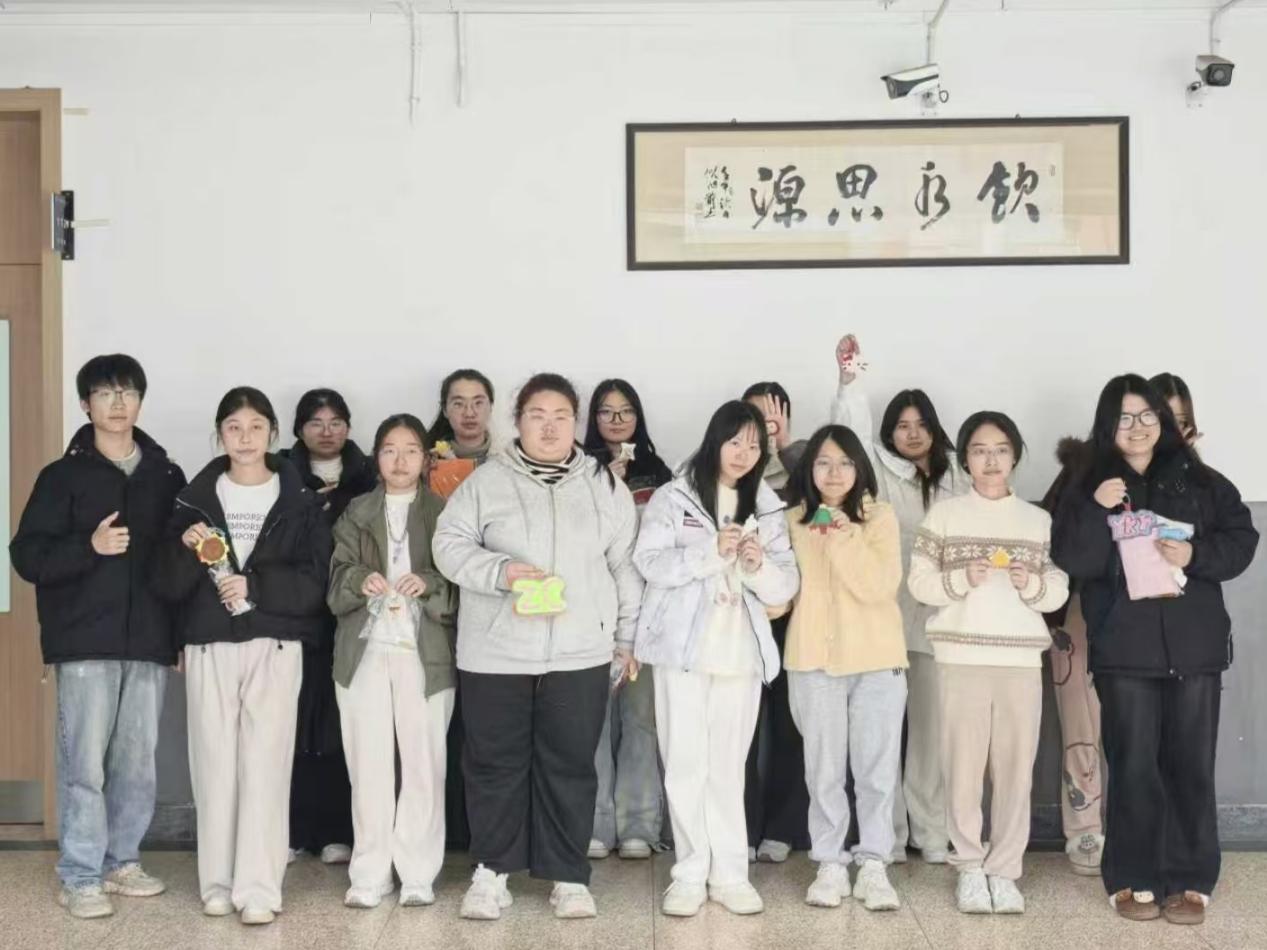 随着作品陆续完成,同学们迫不及待地互相展示自己的“指尖成果”,可爱的挂件、精致的书签、创意满满的小摆件轮番亮相,现场满是赞许的惊叹声,气氛轻松又热烈。全部作品制作完成后,大家纷纷抱着自己的作品聚拢在一起,在镜头前留下了集体合影。