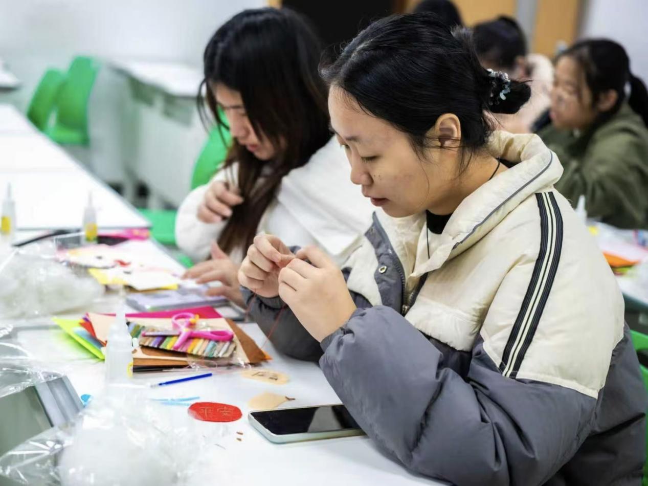 12月17日,人工智能学院组织开展了“织布玩趣,甜满指尖”不织布创作沙龙活动,将手工艺术与心理疗愈相结合,通过美育、劳育的浸润帮助学生疏解日常焦虑,在沉浸式创作中感受温暖与乐趣,也进一步涵养了校园人文底蕴,增强了学子对学院的归属感与集体凝聚力。