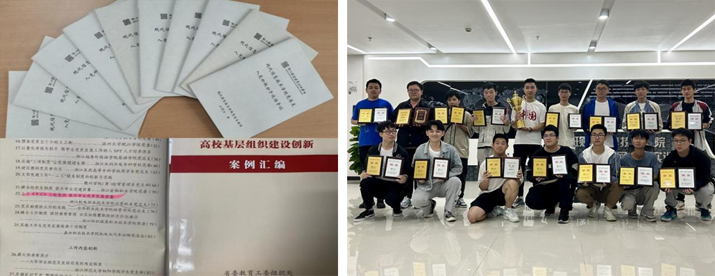 学院党委坚持把党建工作深度融入事业发展各环节,以“党建+”模式系统赋能基层组织建设。以“党建+服务体系”模式为引领,聚焦产教融合,打造“红色核心”服务阵地,推进专业链与产业链、人才链贯通创新链,构建开放多元、功能集成的服务体系;以“党建+人才培养”模式为抓手,强化协同育人,组建以党员教师为主体,企业导师、校友及行业顾问党员为支撑的“红色导师”团队,激活党员和人才“双向培养”“红色引擎”;以“党建+教学科研”模式为基石,深耕教学科研,依托“红色课程”载体,推动党支部建设、教学改革与科研创新的“三位一体”协同发展,实现组织力和业务力“双提升”。建设创新科研团队3个,博士工作室3个,专业竞赛教练团队1个,班主任工作室2个,红色导师工作室1个。教师党支部书记卢成浪获2023年度浙江省自然科学奖三等奖,实现学校该奖项零的突破,且为全省高职院校唯一获奖项目。