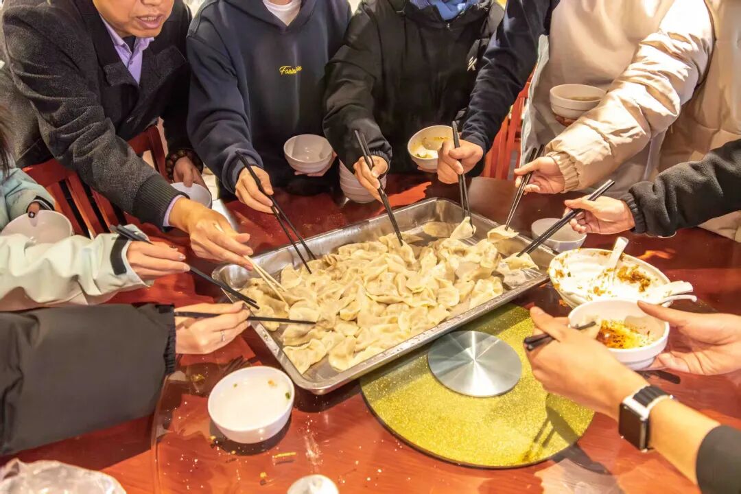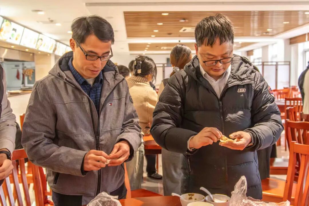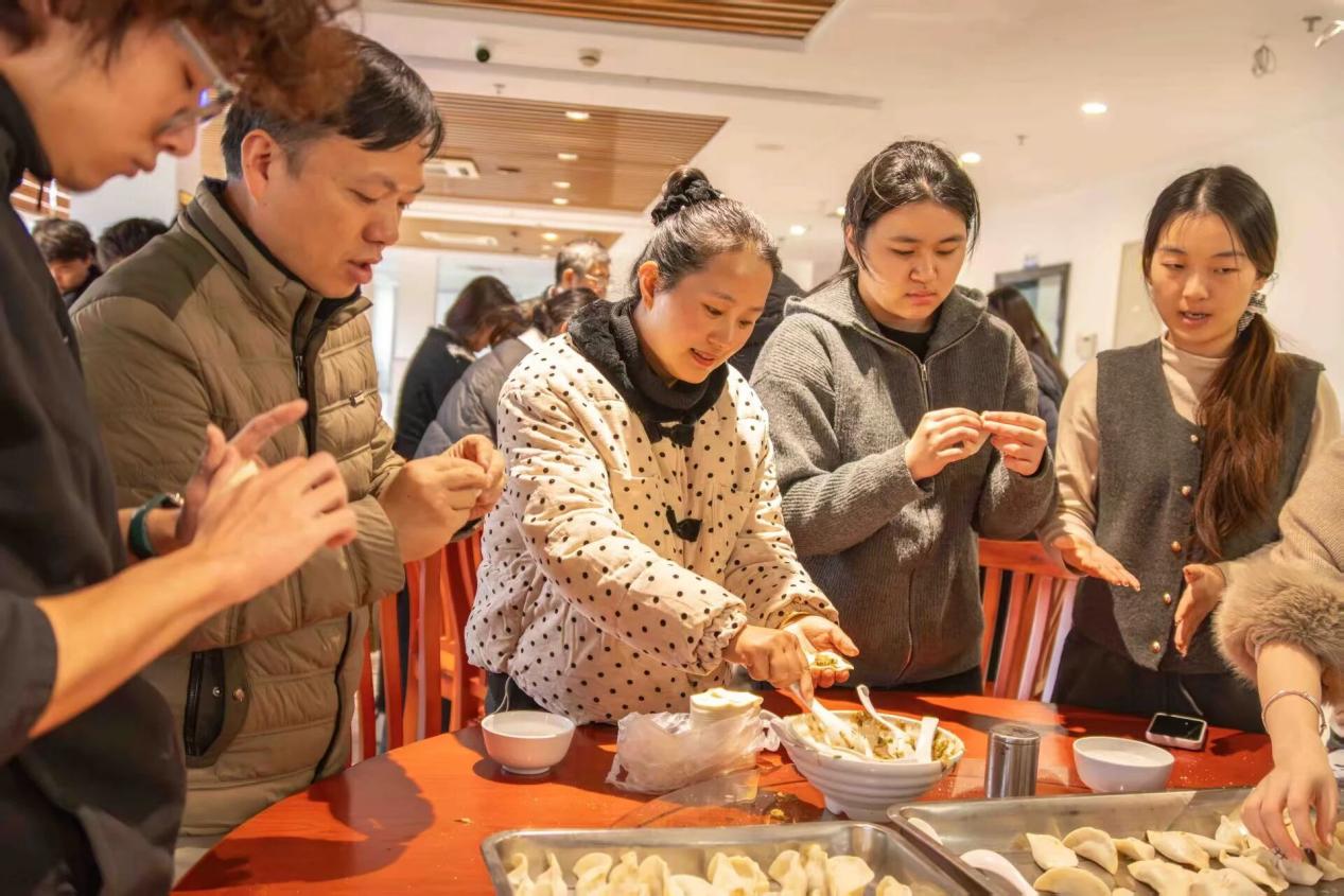 院领导和老师们为学子们送上热气腾腾的饺子,并叮嘱大家注意防寒保暖、兼顾学业与健康。此次活动不仅为学子们带来了冬日里的温暖与美味,更通过沉浸式的陪伴与交流,给予大家精神上的鼓励与支持,让学生切实感受到学校的关怀与重视。