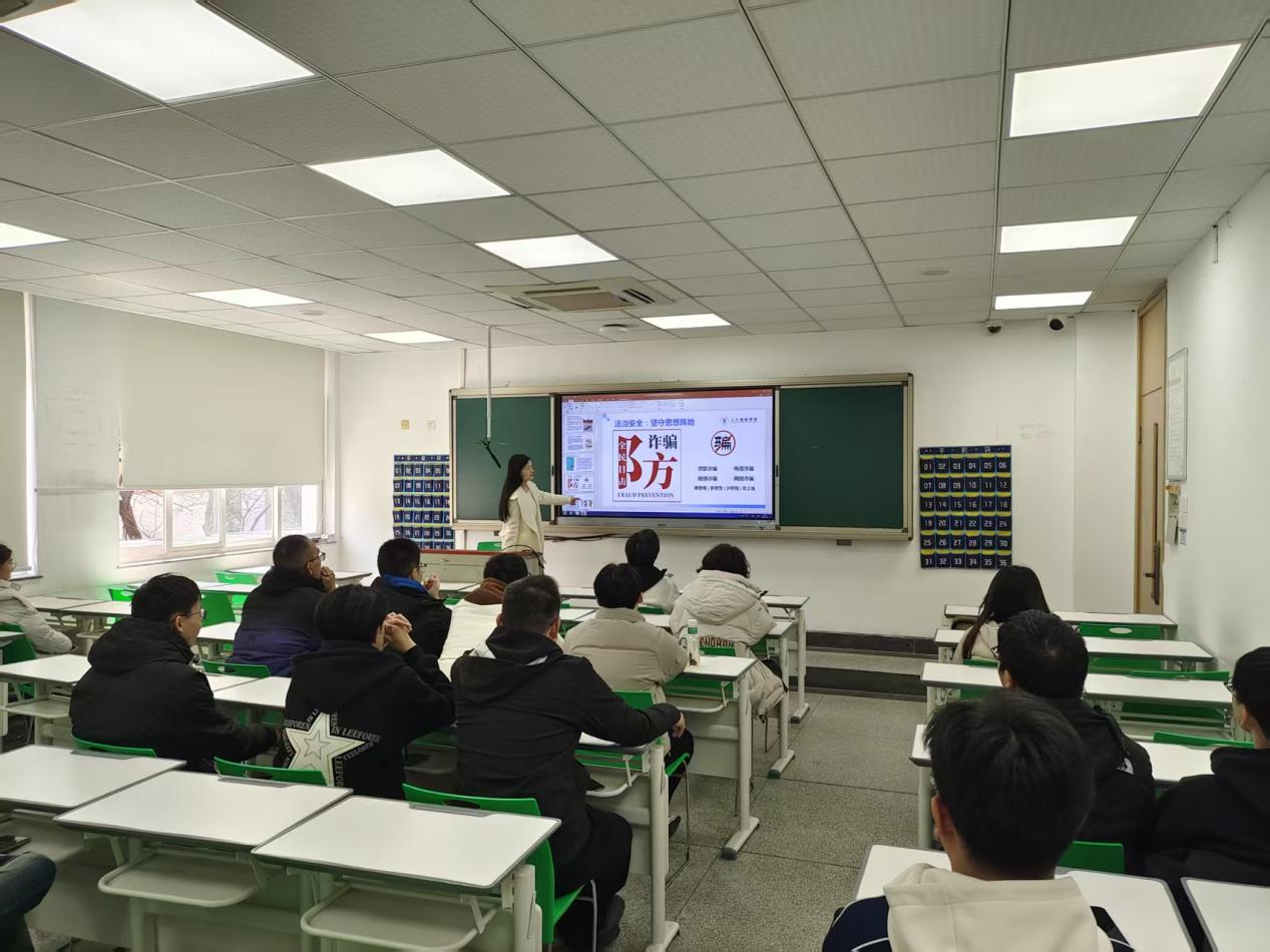 针对电信、贷款、赌博等常见诈骗类型,老师总结 “不信、不怕、不贪、不点、不转” 防骗口诀和实用识别公式,提醒同学们保护个人信息,不扫陌生二维码、不参与刷单,严禁转借售卖银行卡和手机卡,被骗后第一时间拨打学校报警电话。同时警示同学们远离培训贷、裸贷等七种非法校园贷,树立理性消费观,拒绝攀比。