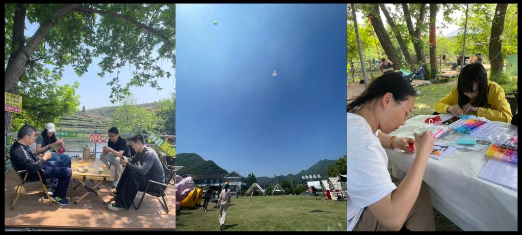 午后,五大主题活动同步开启:或徒步光明寺水库茶山环线,沐风而行;或围坐天幕下,展开掼蛋友谊赛与狼人杀桌游,斗智斗欢;或迎风奔跑,将五彩风筝送入蓝天,重拾童趣;手工拼豆区,老师们用一颗颗彩色豆粒“编”出创意,感受年轻人超迷的手作治愈。