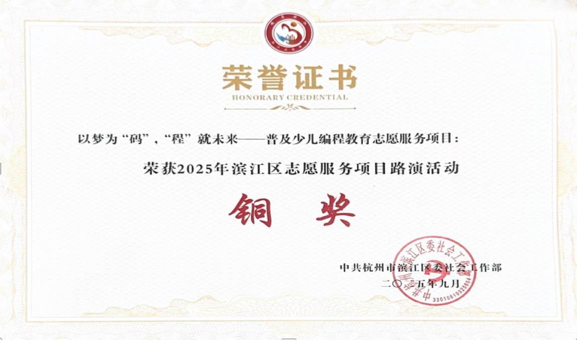 以梦为码,程就未来----普及少儿编程教育志愿活动项目,荣获志愿服务项目大赛铜奖