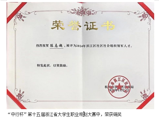 “中行杯”第十五届浙江省大学生职业规划大赛铜奖