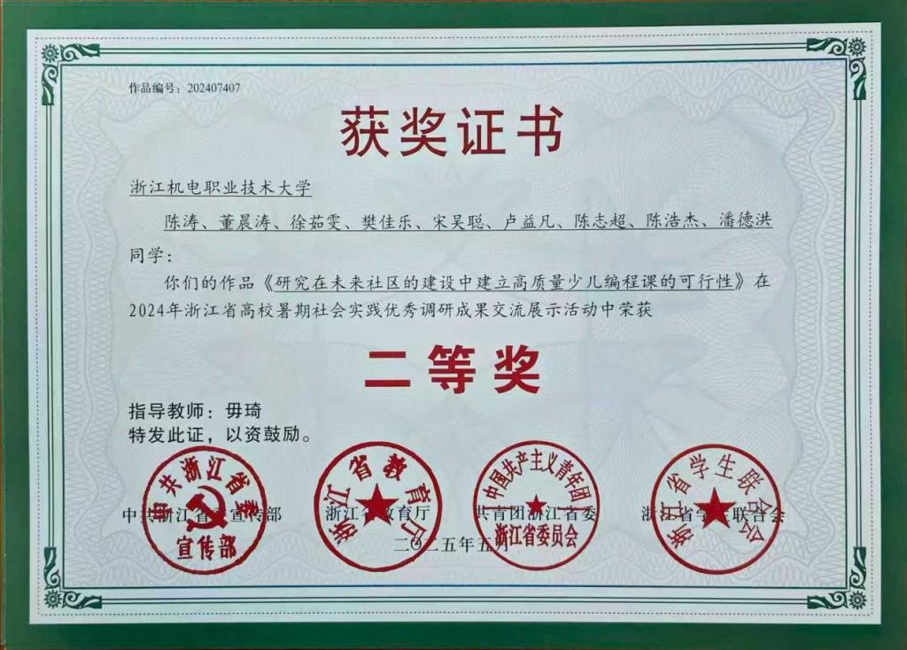 2024年浙江省高校暑期社会实践优秀调研成果交流展示活动获二等奖