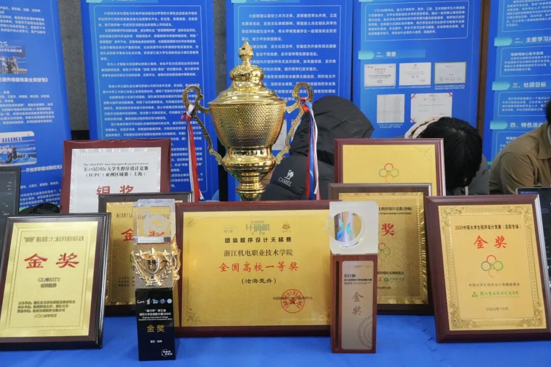 各社团的蓬勃发展,是学院人才培养成果的生动缩影。2025年,学院相关项目与学子屡创佳绩:STEAM研学社和火疫联盟获评2025年“榜样100”全国优秀大学生社团/团队,荣获2025年滨江区志愿服务项目路演活动铜奖;唯物论社在2025年浙江省职业院校技能大赛高职组“物联网应用开发”赛项斩获铜奖,AI创业协会的“葡萄甜了”——智慧助农扶持新生葡萄产业渡过难关项目拿下“农行杯”浙江省国际大学生创新大赛(2025)银奖,还在中国移动杯·第一届浙江省大学生人工智能竞赛开放场景赛专题一高职高专组取得三等奖。
