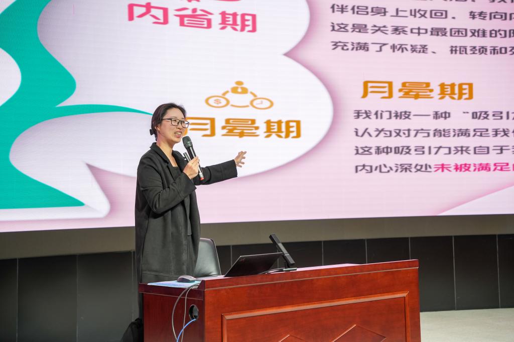 为引导大学生树立理性、健康的亲密关系观念,提升情绪管理与人际沟通能力,近日,人工智能学院特邀心理咨询师、婚姻家庭咨询师李汀沙老师,开展“从‘我’到‘我们’—— 大学生健康关系观培育” 主题心理讲座。学院众多学生到场聆听,在互动与思考中探索亲密关系的成长之道。