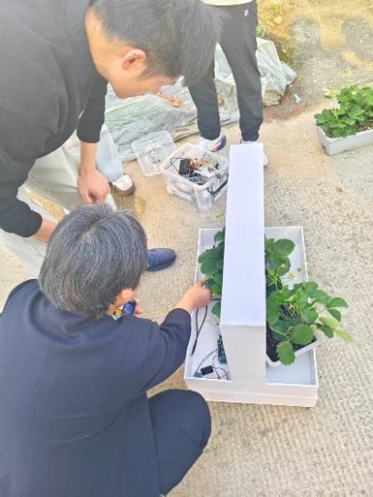 李春楠所长结合种植实践,系统讲解了草莓生长周期、生长特性、适宜环境及栽培技巧,细致演示了育苗、定植等关键环节。师生们认真聆听、主动提问,近距离观察草莓生长状态,记录关键细节,在实践中深化认知,为后续项目优化积累了宝贵经验,也对草莓种植的科学性、专业性有了更深刻理解。