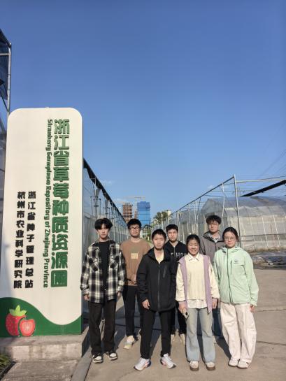 研学伊始,在杭州市农业科学研究院生物技术研究所李春楠所长的带领下,师生团队参观了草莓新品种培育基地及浙江省草莓种质资源圃。该基地是杭州市草莓产业科技创新核心阵地,涵盖新品种选育、标准化栽培等多个研究方向,培育出粉玉、脆玉等优质品种,承担着资源保存、技术推广、育苗试种等重要任务,为师生提供了全方位的学习空间。